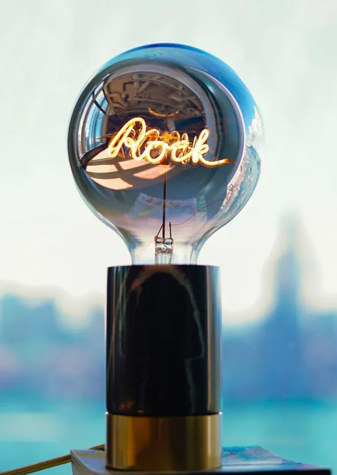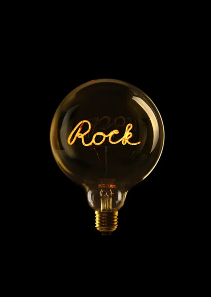 Ampoule en verre ambré avec le message Rock.
