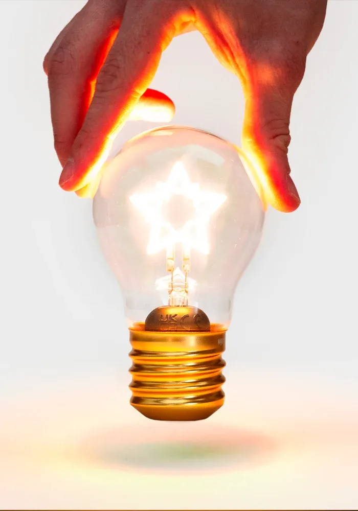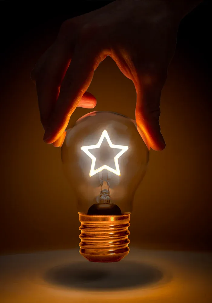 Ampoule sans fil avec une étoile à l’intérieur. Cette ampoule s’allume sans se brancher ni s’attacher à une lampe.