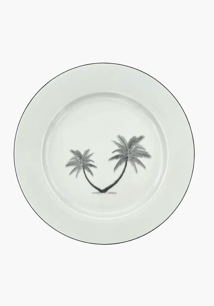 Assiette Grand Modèle En Porcelaine Palmier Double Noir