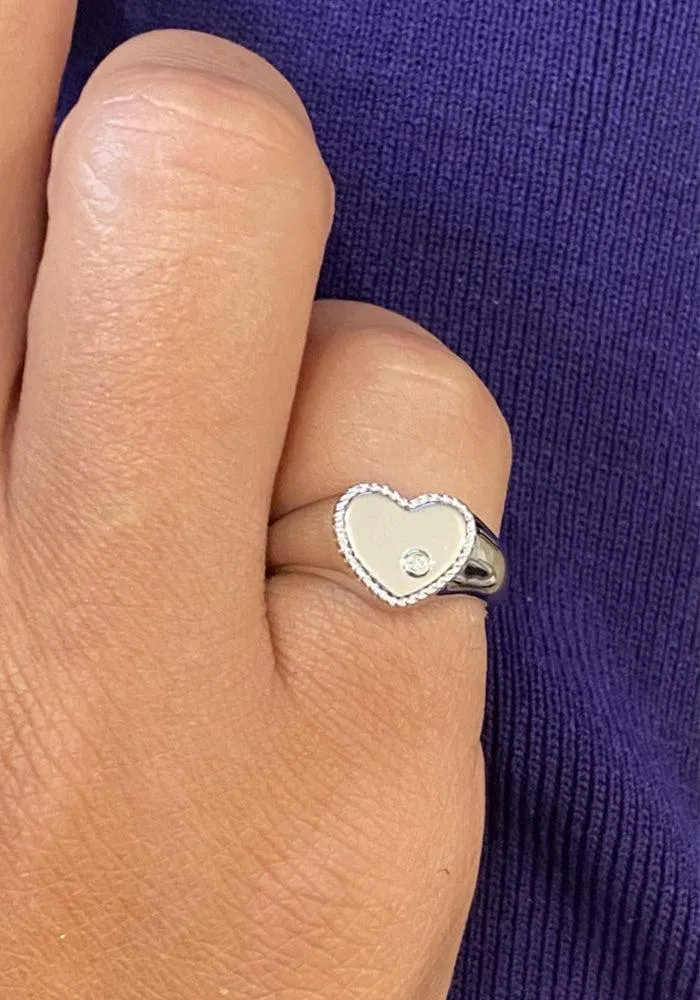 Bague mini chevalière baby en or blanc 9 carats et diamant blanc