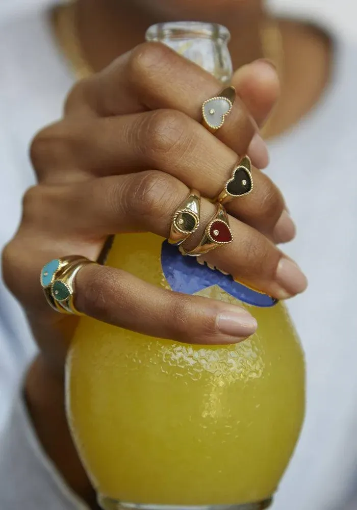 Bague mini chevalière baby en or jaune 9 carats, pierre naturelle et diamant blanc