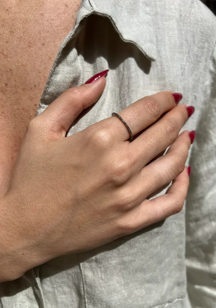 Bague anneau fin en ruthenium avec la moitié pavée de diamants.