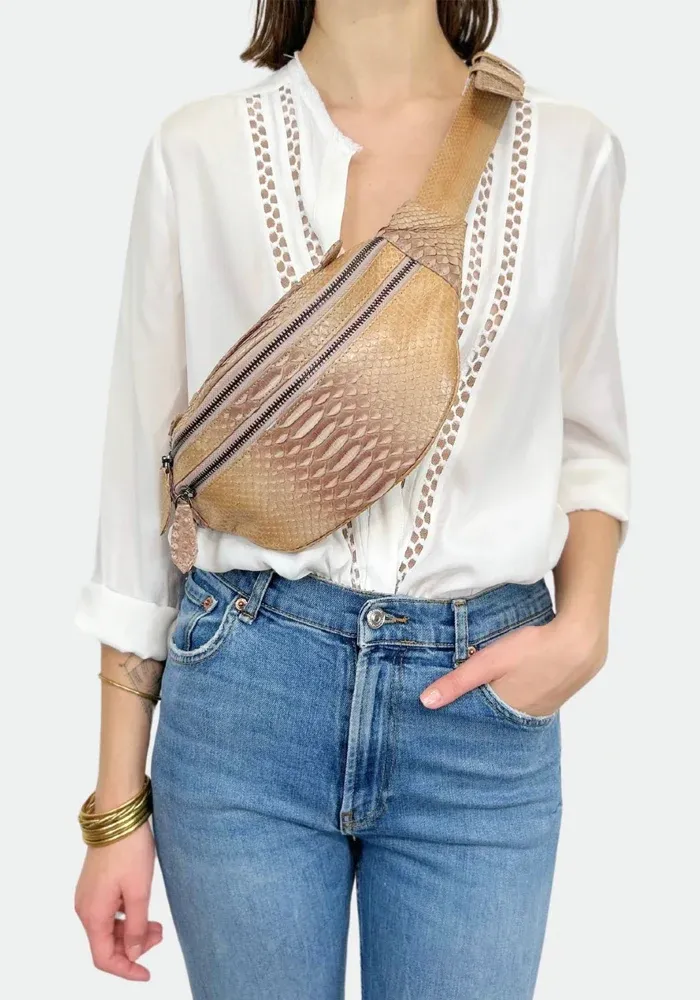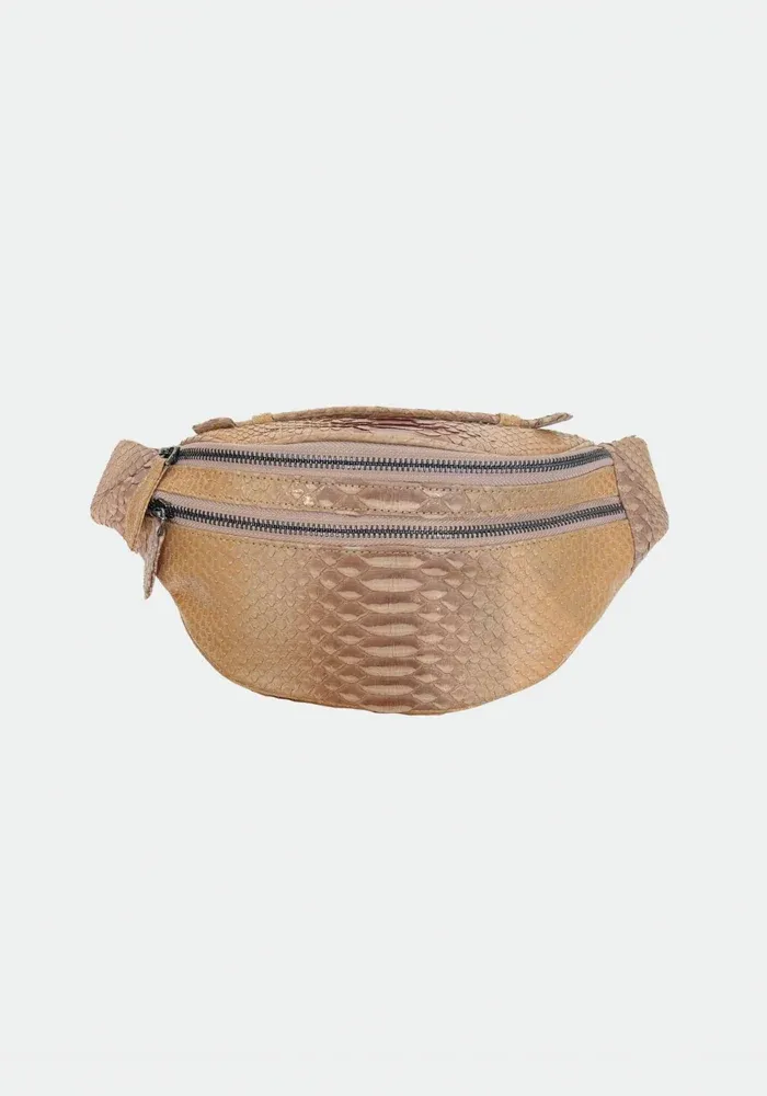 Sac banane Mike en python couleur macchiato beige.