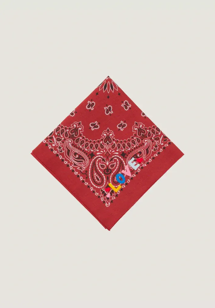 Bandana carré en coton avec un broderie Love multicolore.