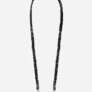 Bijou de téléphone Doha noir doré, composé d’une tresse en coton noir et de cristaux multicolores.