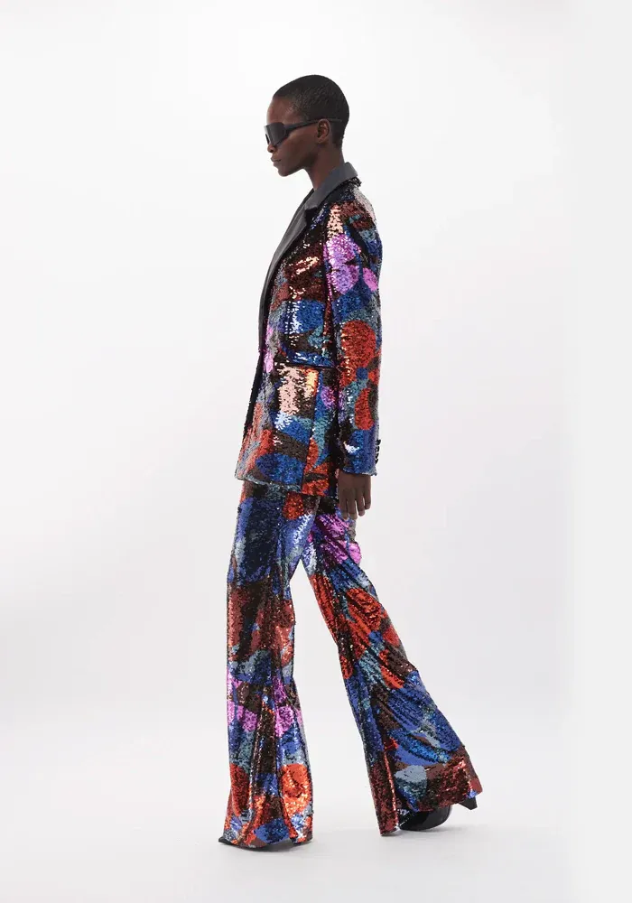 Veste Mila coupe blazer en sequin avec des motifs fleuris.
