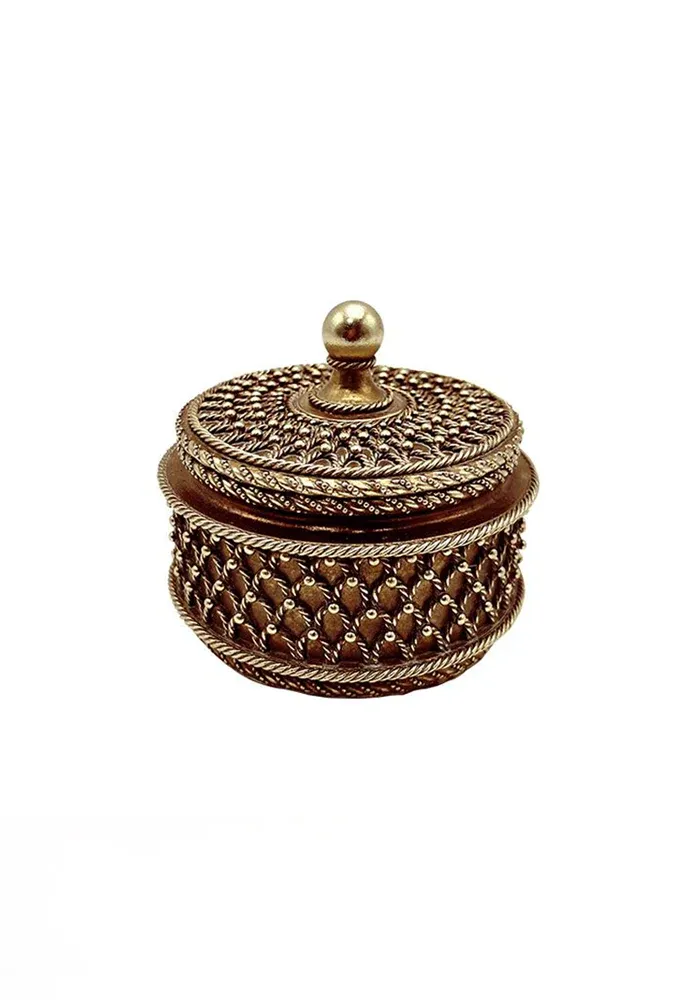 Boite dorée en bois avec le couvercle amovible avec des motifs mailles.