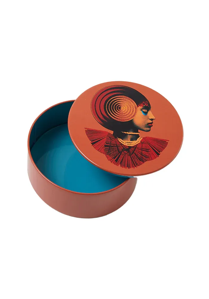 Boite ronde Gipsy en métal à motifs vernis.