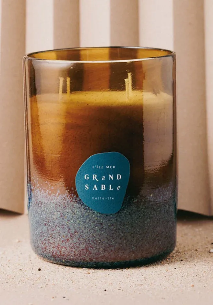 Bougie soufflée bouche par un maître verrier et remplie à la main sur Belle-Île.