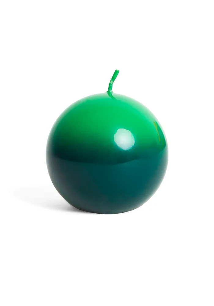 Bougie décorative ronde dégradée de verts.