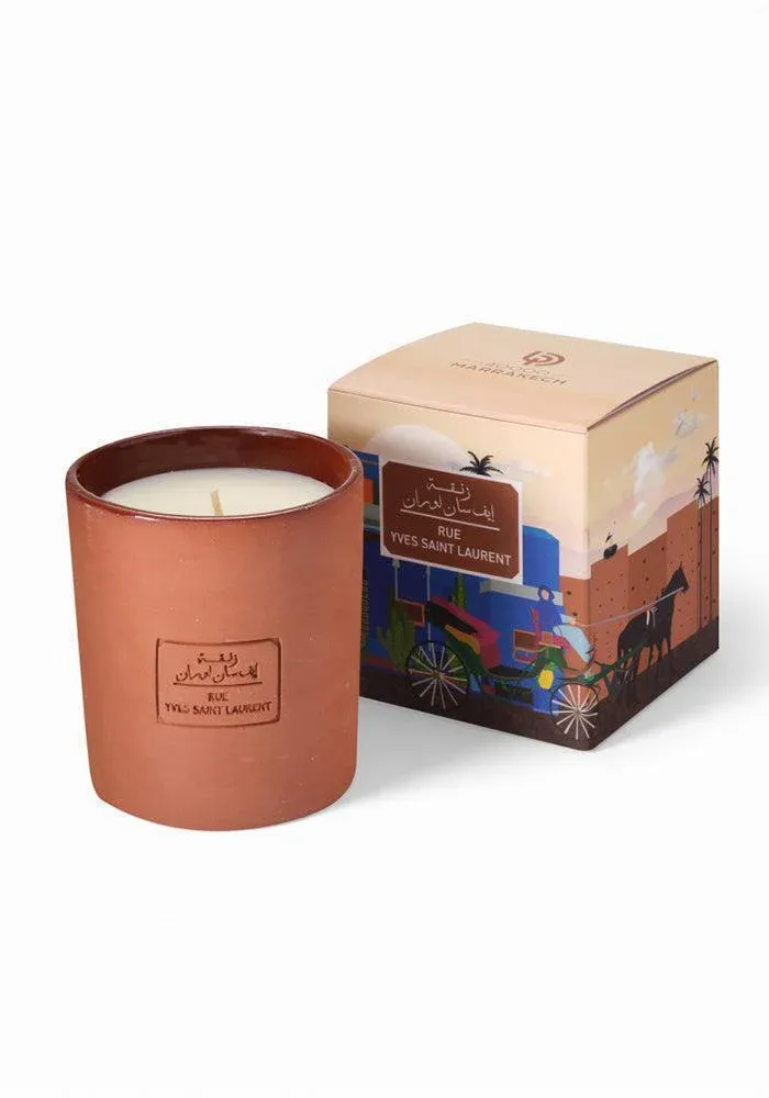 Bougie Rue Yves Saint Laurent, en terre cuite.