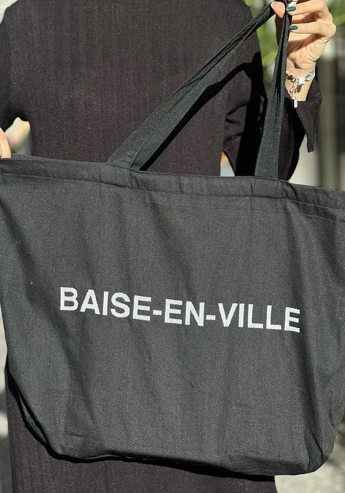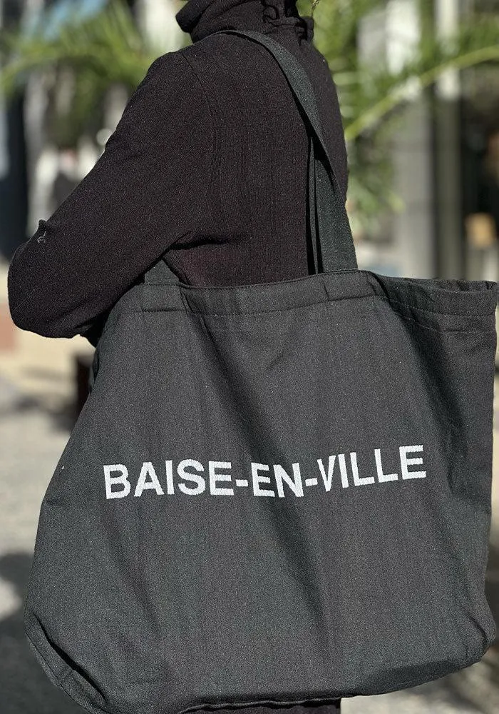 Cabas avec inscription « Baise en ville ».