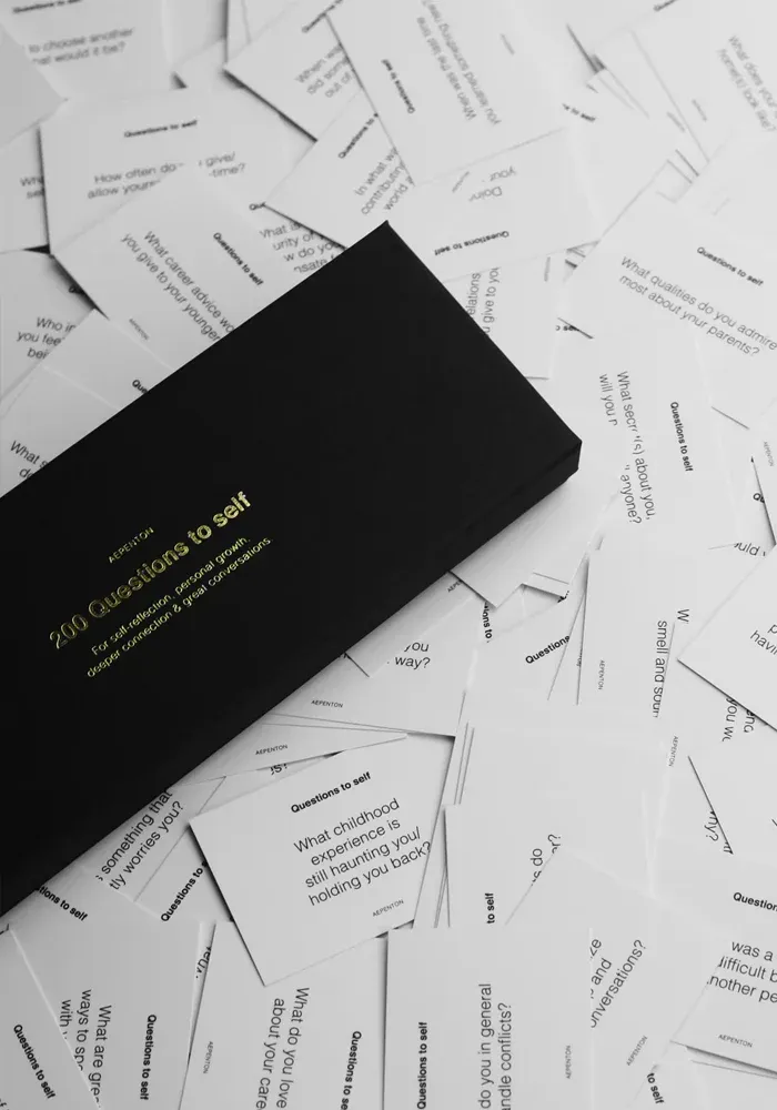 Ce coffret de luxe contient 200 questions conçues pour vous aider à réfléchir profondément sur divers aspects de votre vie : carrière, famille, bonheur, amitié, objectifs, ambitions, passé, présent, futur, et bien plus encore.