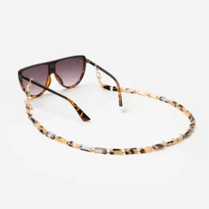 Chaîne de lunettes Nahara beige de 72 cm, composée de maillons rectangulaires blanc nacré.