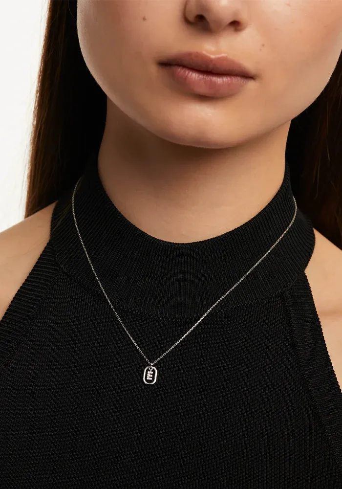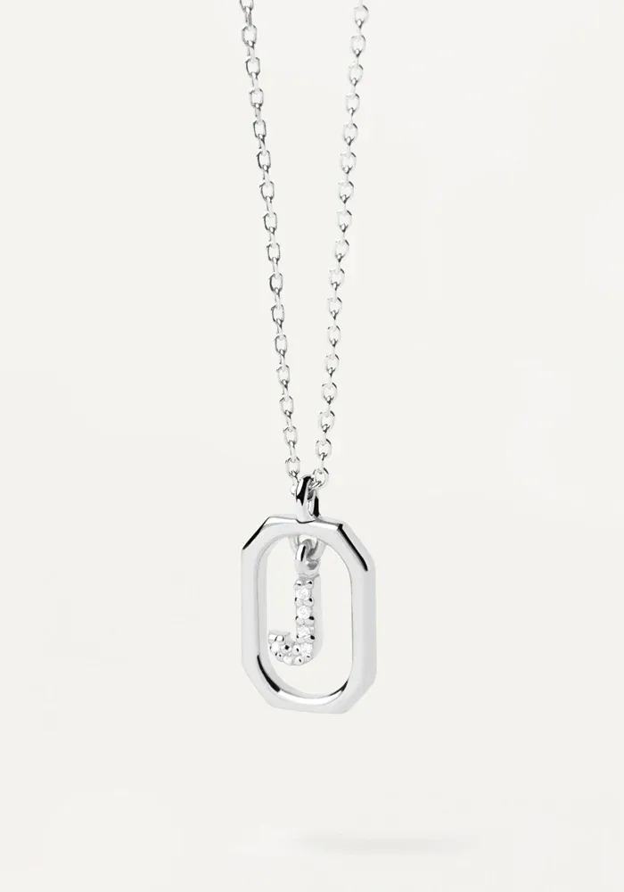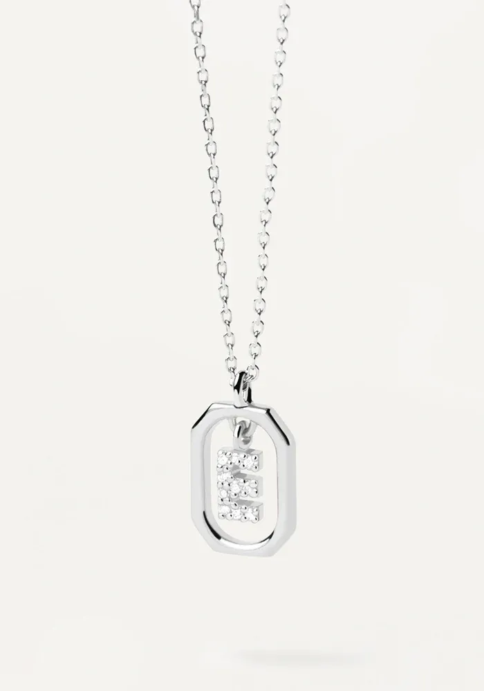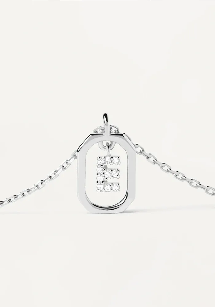 Collier Mini Letter en argent avec un pendentif octogonal et le centre avec une lettre décoré de zircons blancs.