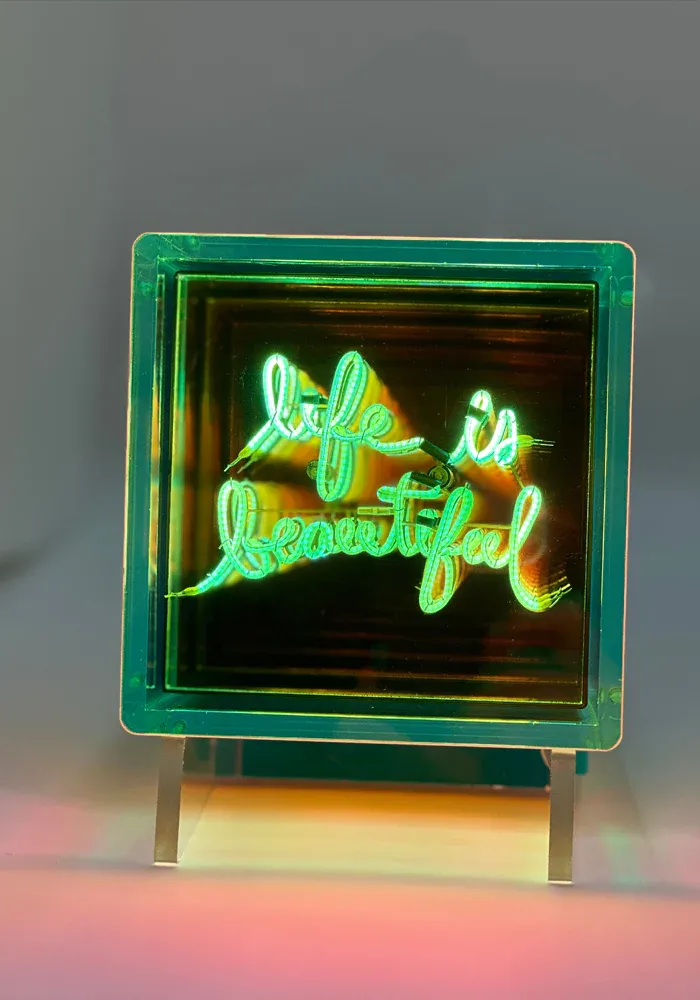 Lampe Message In The Box carrée en plexiglass multicolore et rechargeable.