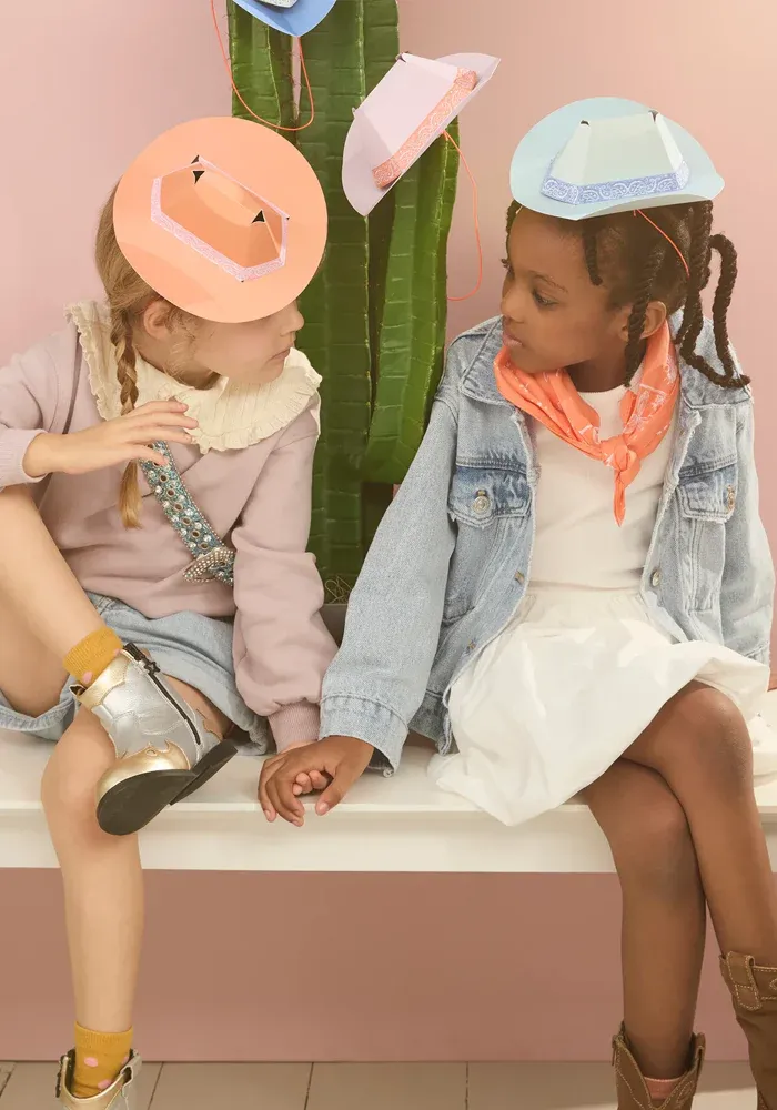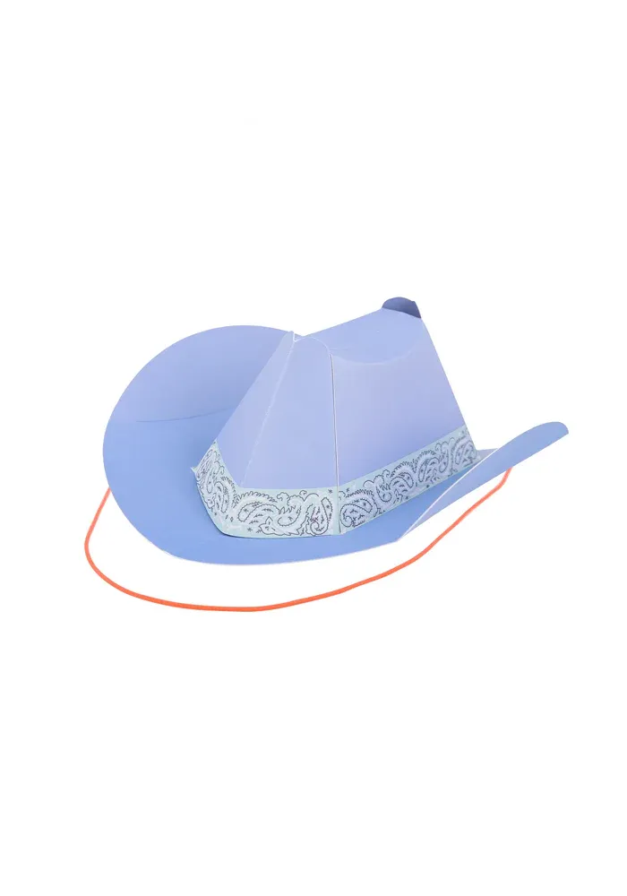 Lot de 8 chapeaux de cowboys en carton coloré.