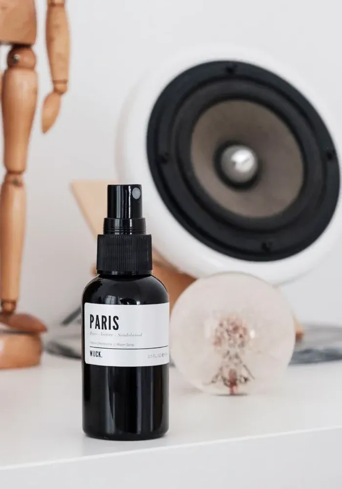 Parfum d’ambiance format voyage de 60 ml avec une étiquette Lyon.