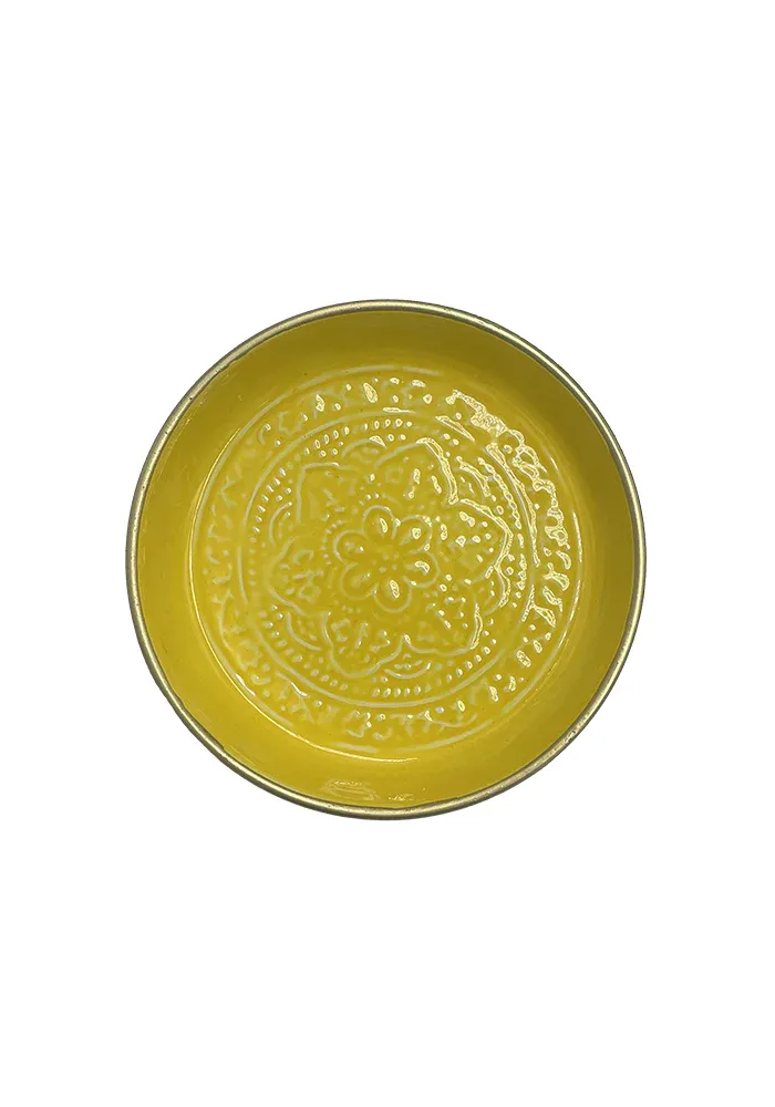 Plateau berbère rond en métal Jaune avec une bordure dorée