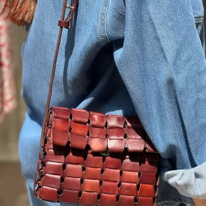 Sac Japan en cuir de vache tissé à la main avec une doublure dans la couleur Tan.