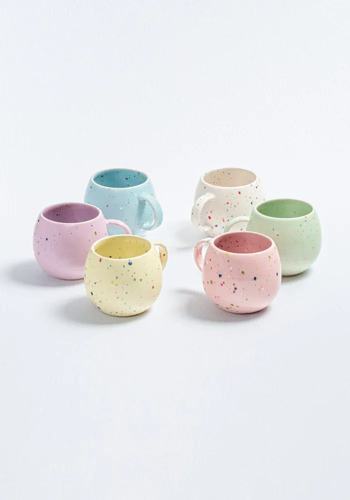 Tasse New Party Ball en céramique avec des tâches de peinture colorées.