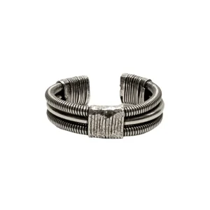 Bague Homme 2 Cordes De Basse Emballées Argent Vieilli