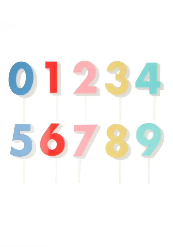 Lot de 10 décorations pour gâteaux en forme de numéro en acrylique.