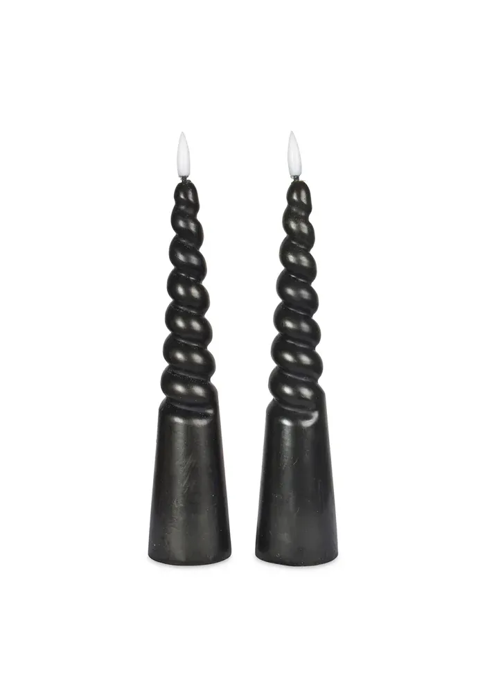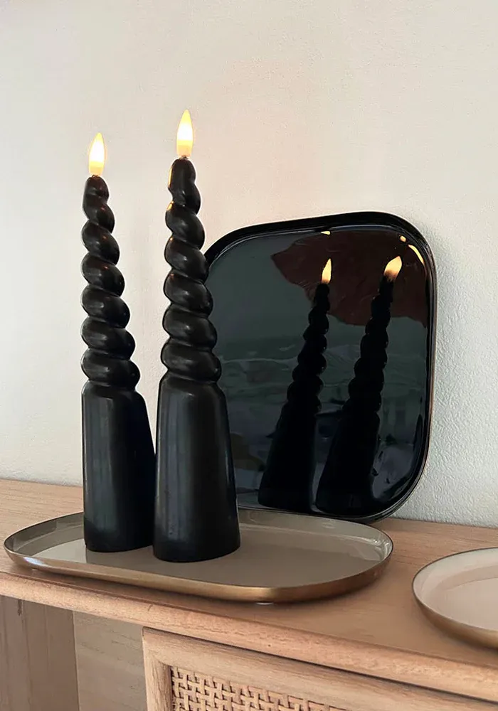 2 bougies LED torsadées de couleur noire en cire naturelle.
