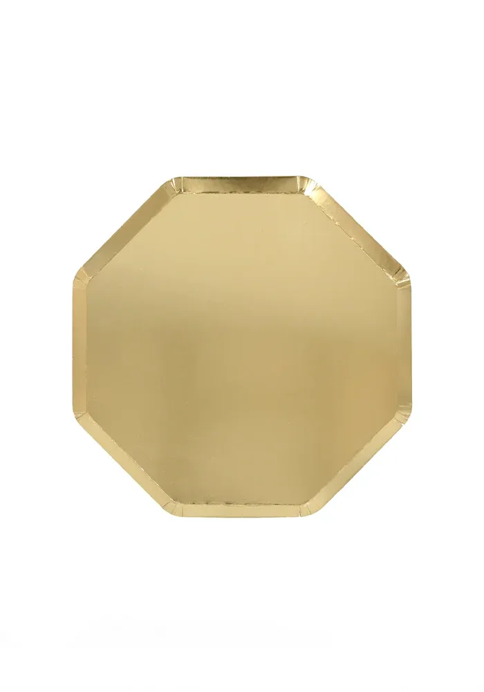 Lot de 8 assiettes octogonales dorées.