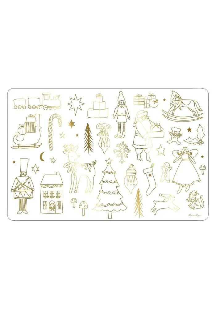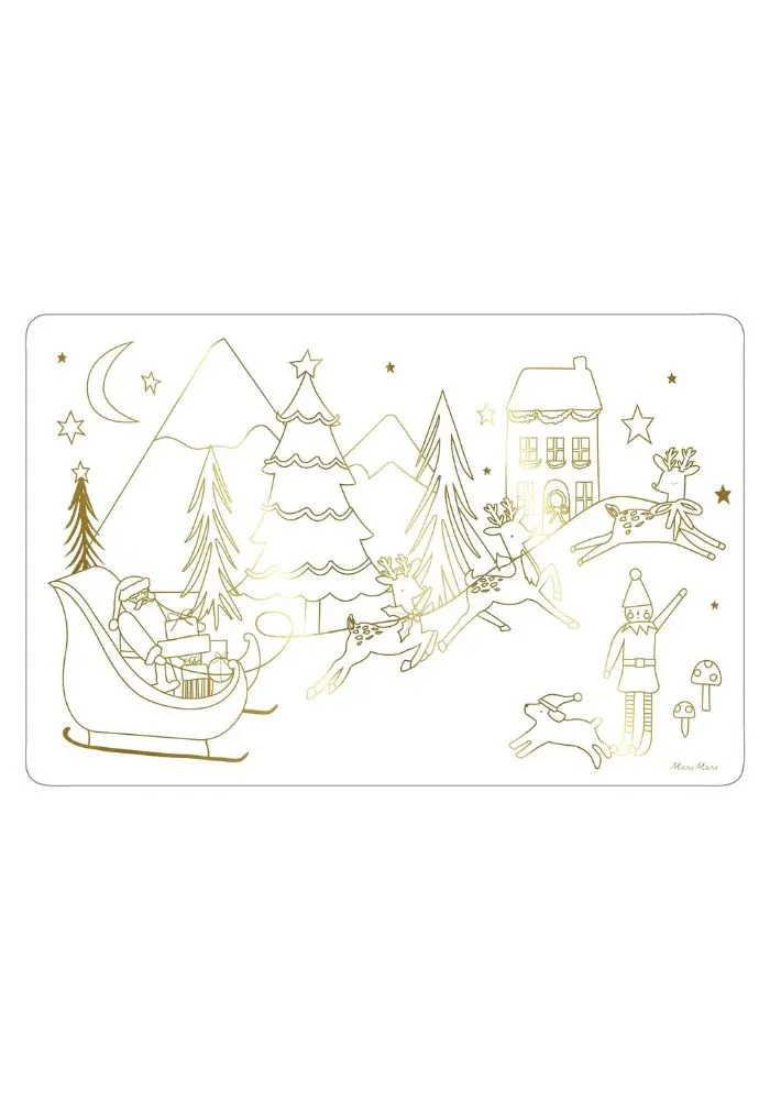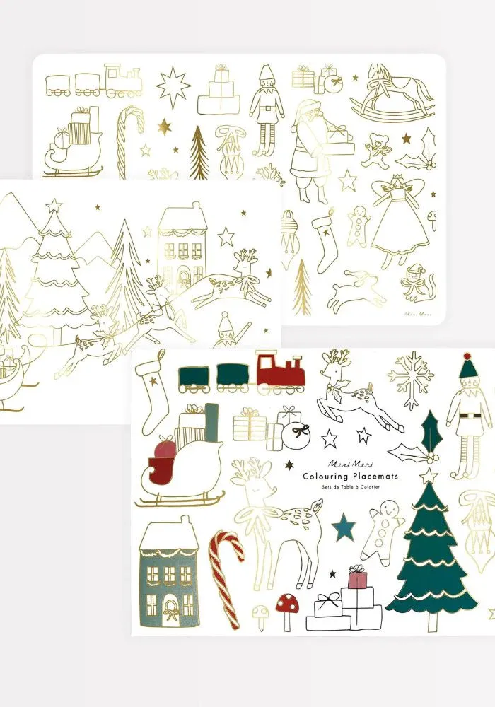 8 sets de table à colorier en blanc et doré. Mesurant 42,5 x 27,9 cm, chaque set de table présente des motifs en partie dorés que vous pouvez personnaliser en les coloriant.