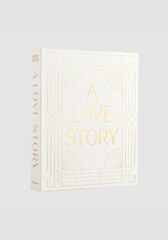 Album photo de mariage A Love Story avec une couverture rigide et des dorures.