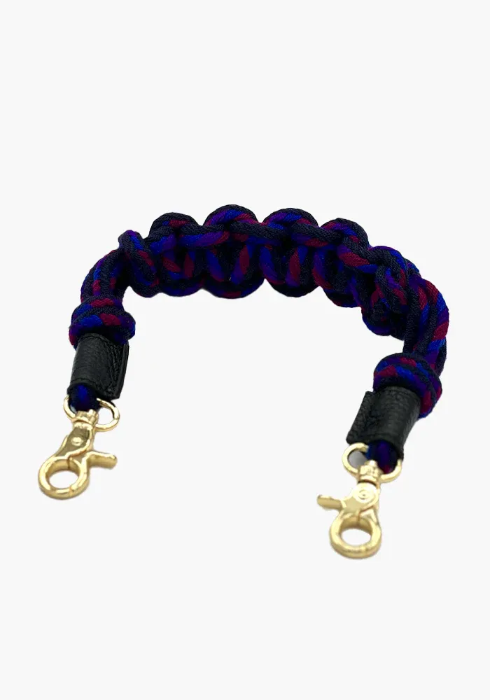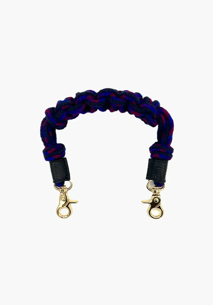 Anse de sac courte tissée et tressée avec les bouts en cuir et une bijouterie dorée.