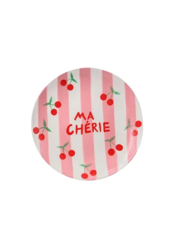 Assiette à dessert Diego ma chérie en céramique colorée avec le message « ma chérie ».