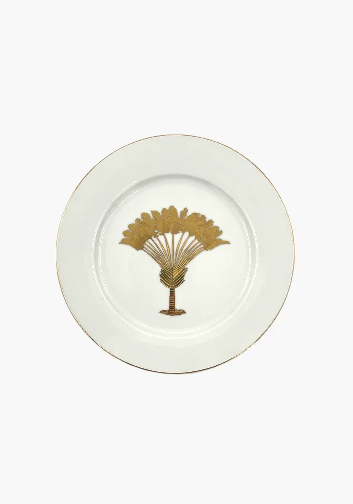 Assiette en porcelaine avec un motif dattier en doré.