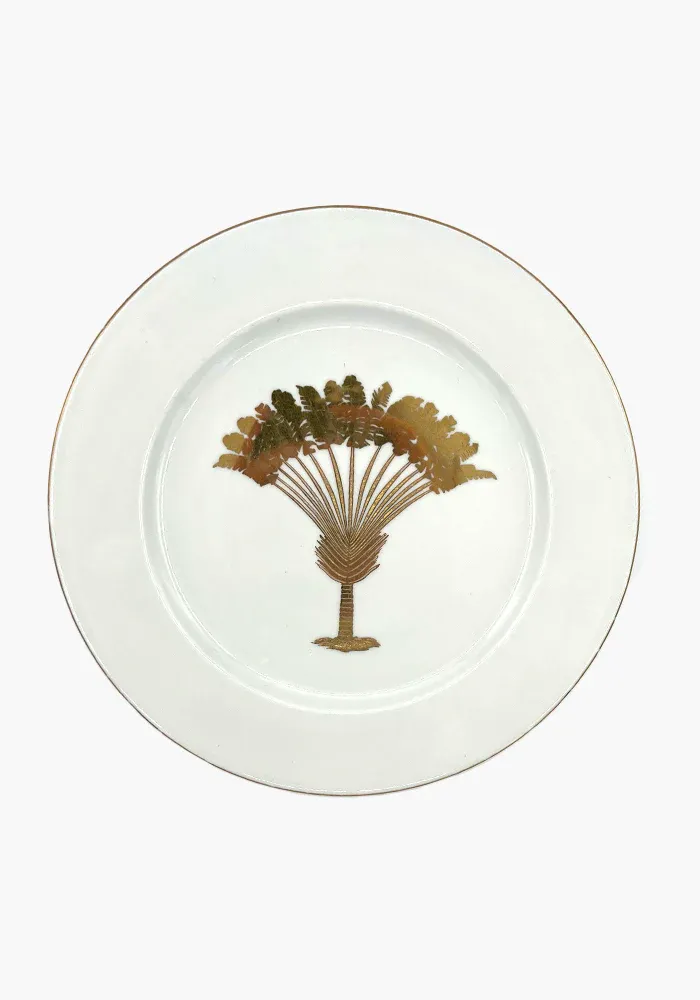 Assiette en porcelaine avec un motif palmier en doré.