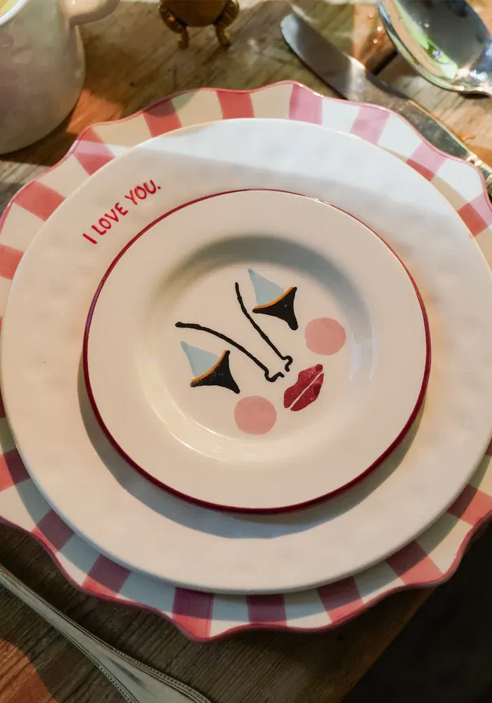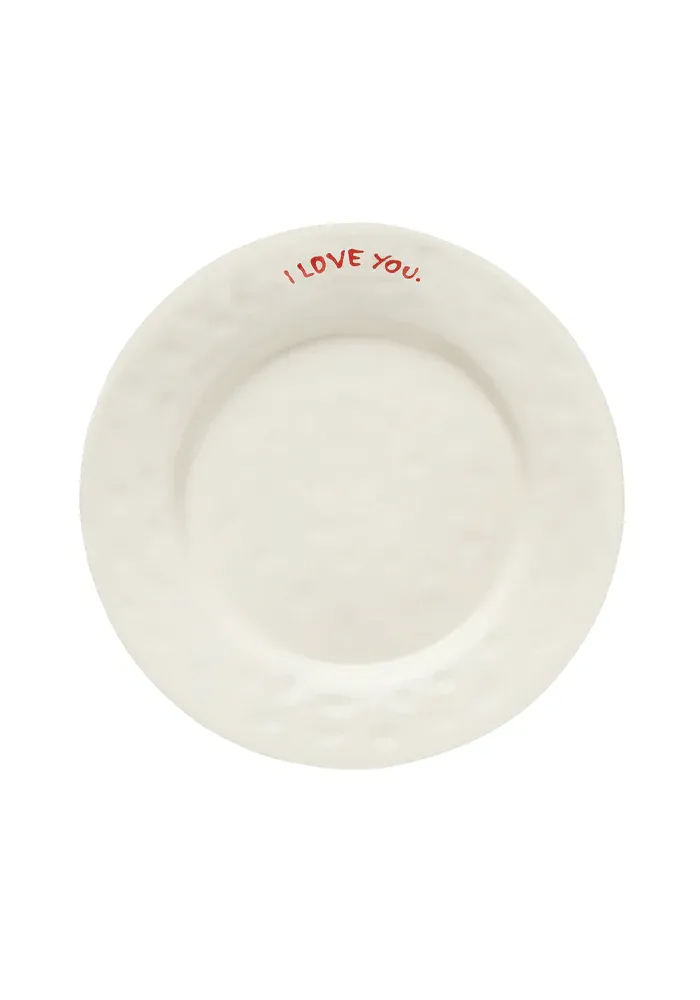 Assiette I love you en céramique blanche avec l’inscription I love you en rouge.