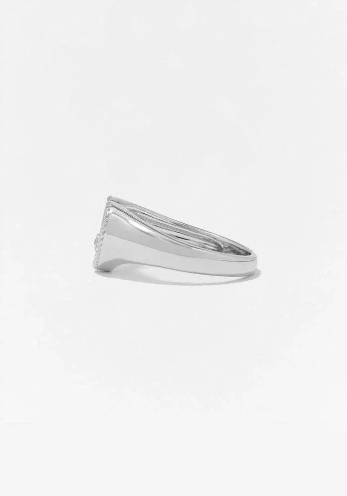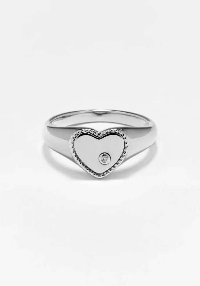 Bague mini chevalière baby en or blanc 9 carats et diamant blanc