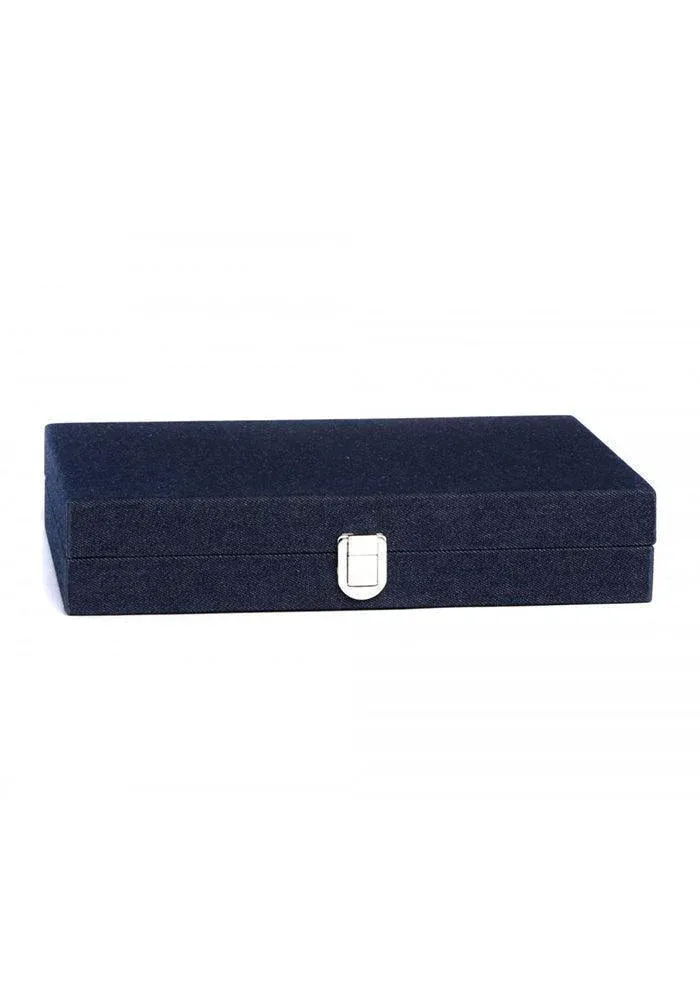 Le Backgammon Daniel, moyen modèle, en toile jean bleu à l’extérieur et en cuir à l’intérieur.