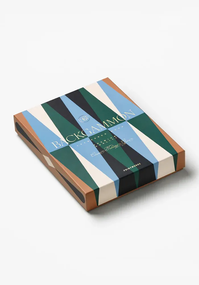 Jeu de Backgammon Lacquered Wood laqué de couleur beige, camel ,bleu et vert.