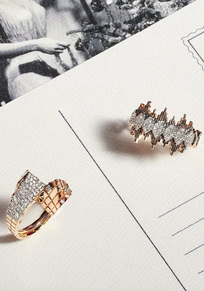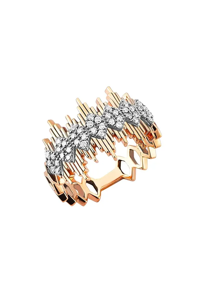 Bague Apex en or rose 18 carats avec pics et des losanges en diamants blancs