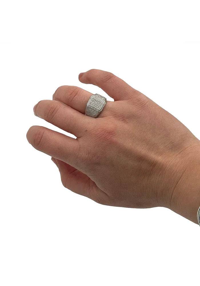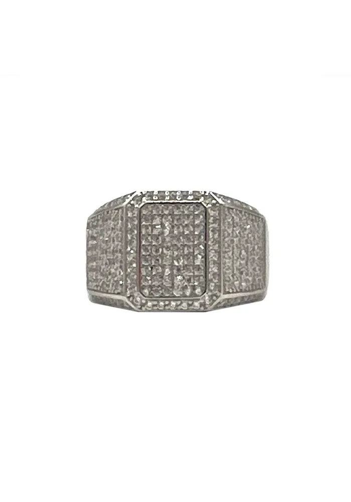 Bague Arthur chevalière avec un octogone pavé de zircons blancs.