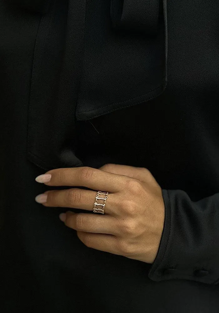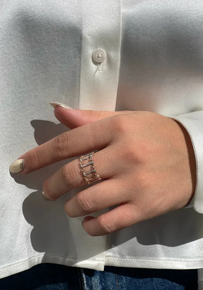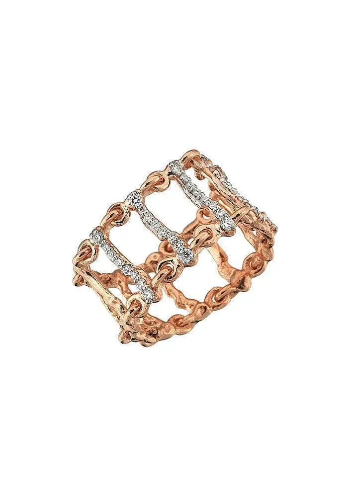 Bague Caspian Opensea en or rose 14 carats avec 2 rangs reliés avec des tubes irréguliers dont 5 pavées de diamants blancs.