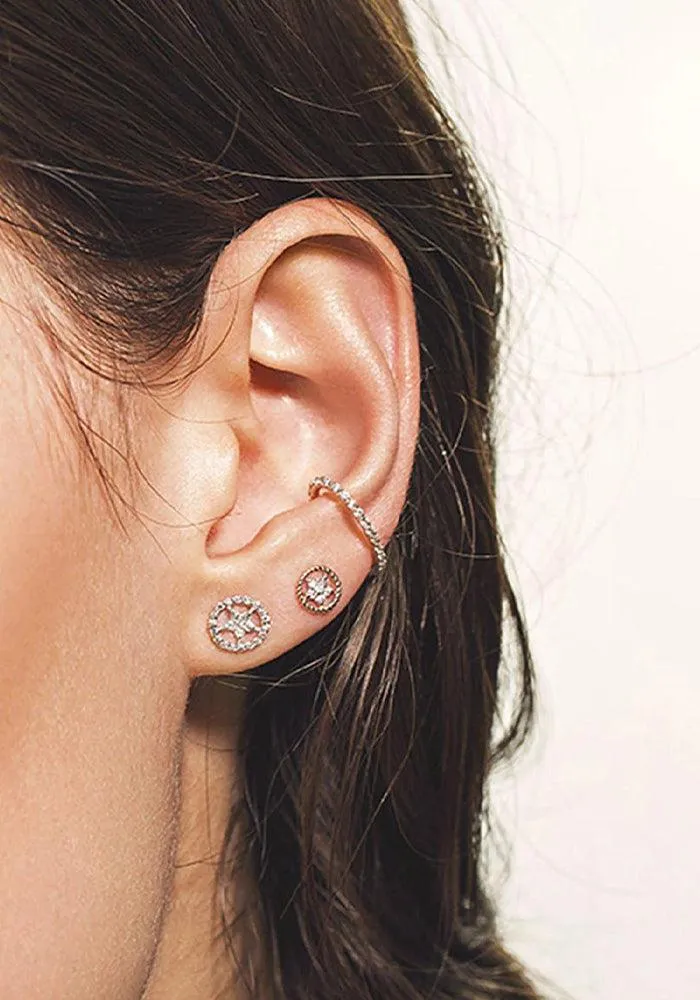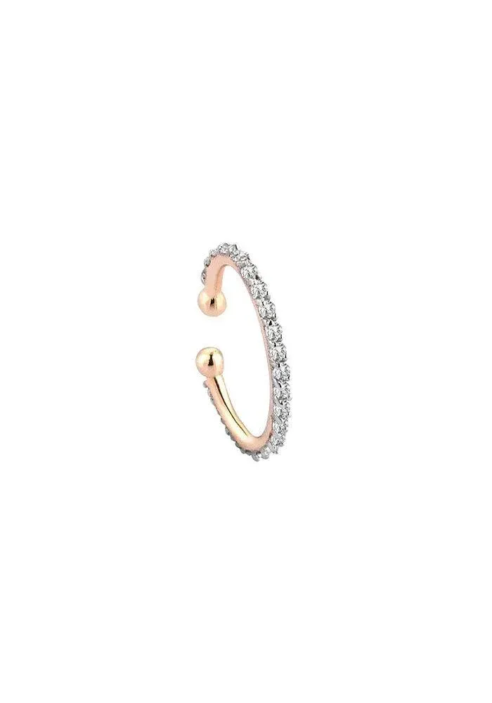 Bague d’oreille fine en or rose 14 carats en C pavée de diamants blancs.