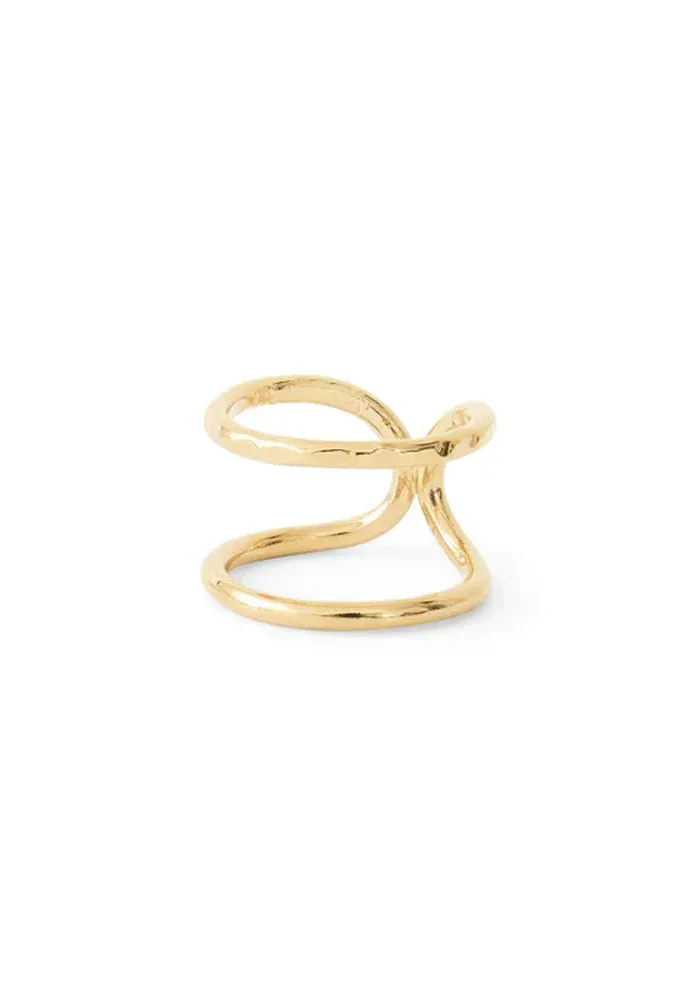 Bague Eve avec deux bandes en plaqué or jaune dont une martelée.