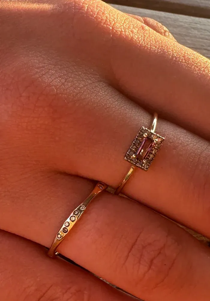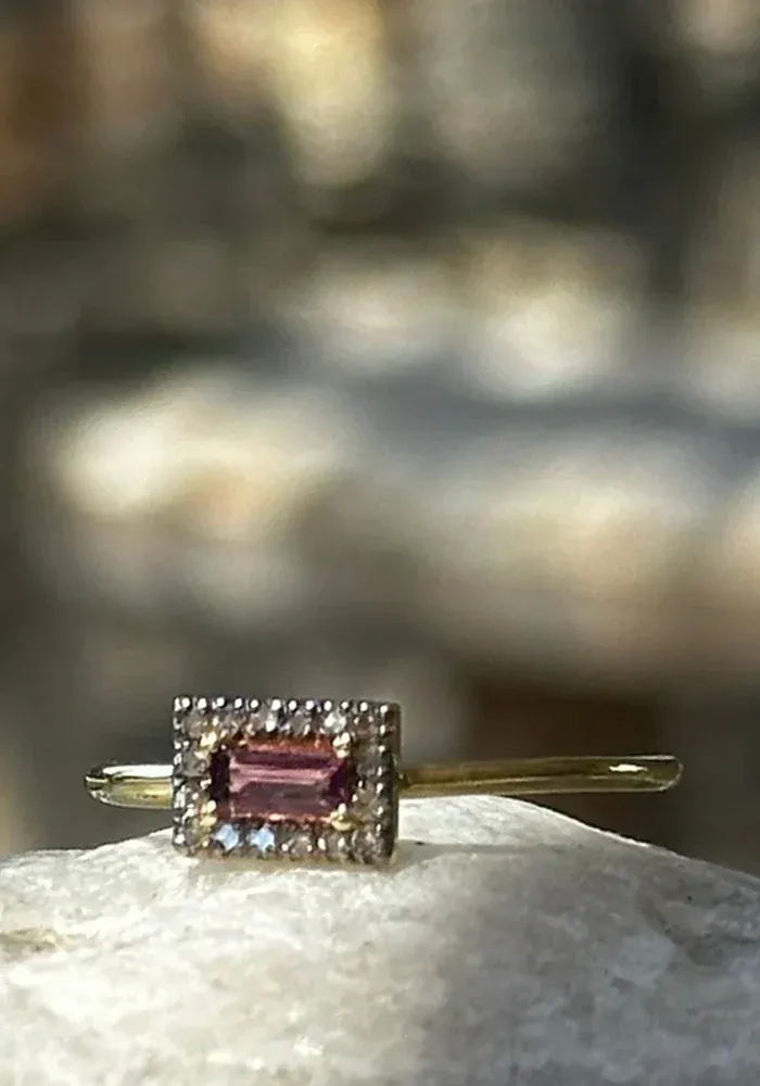 - Pierres : Tourmaline baguette rose sertie de petits diamants