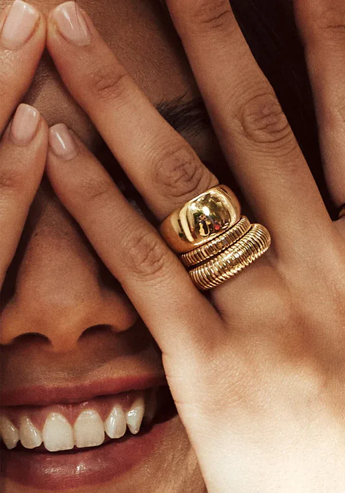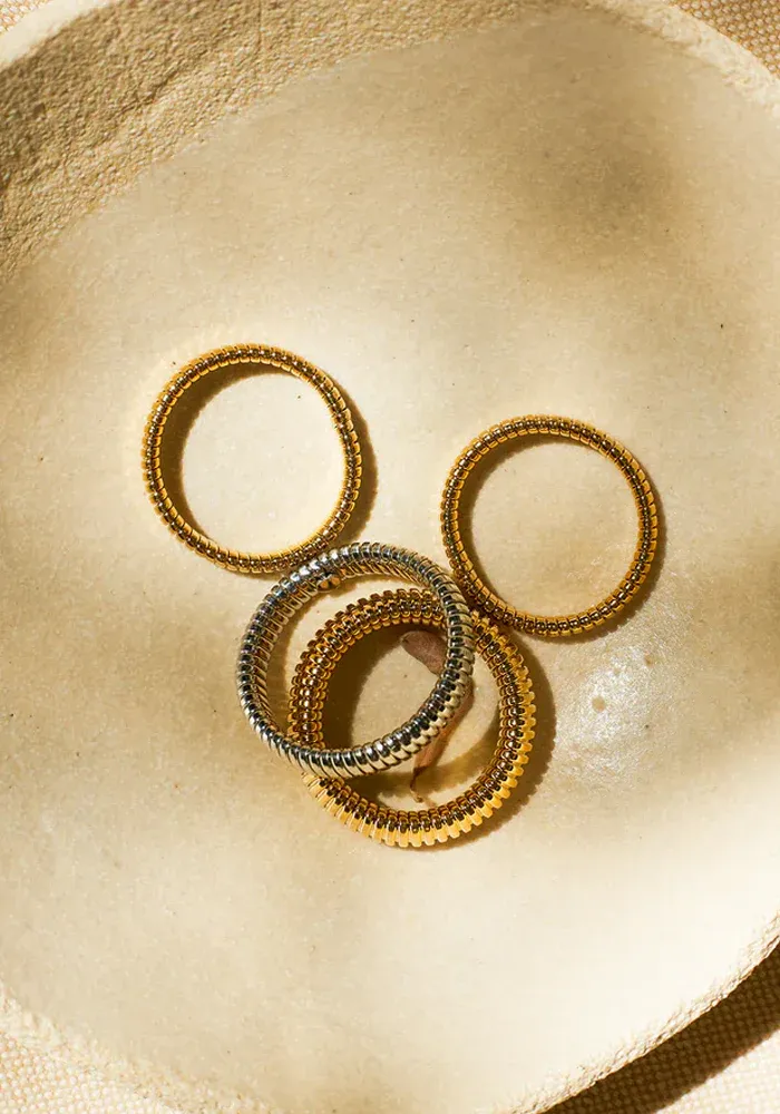 Bague Micro en acier doré à l’or fin avec des stries.