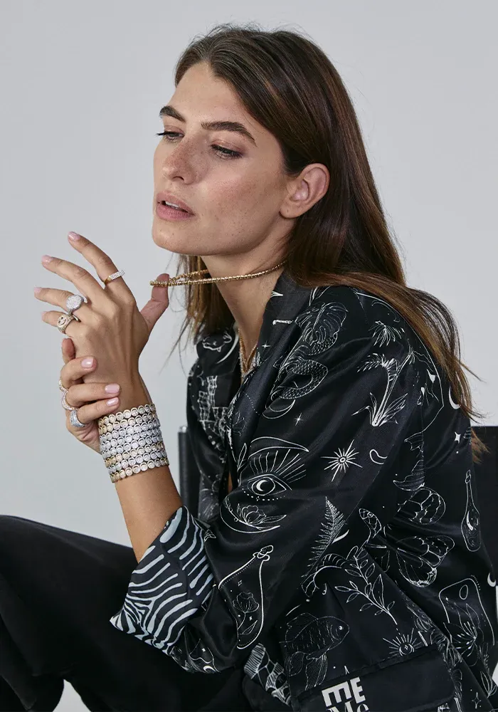 Bague Molly type chevalière avec un visage ajouré et demi pavée de zircons blancs.