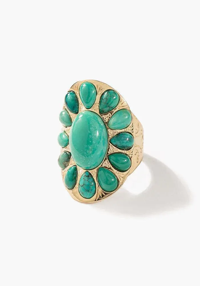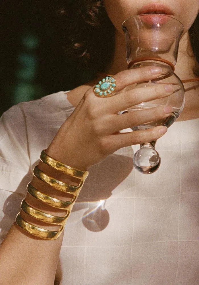 Bague Navajo en laiton recouvert d’or jaune 18k avec des turquoises.