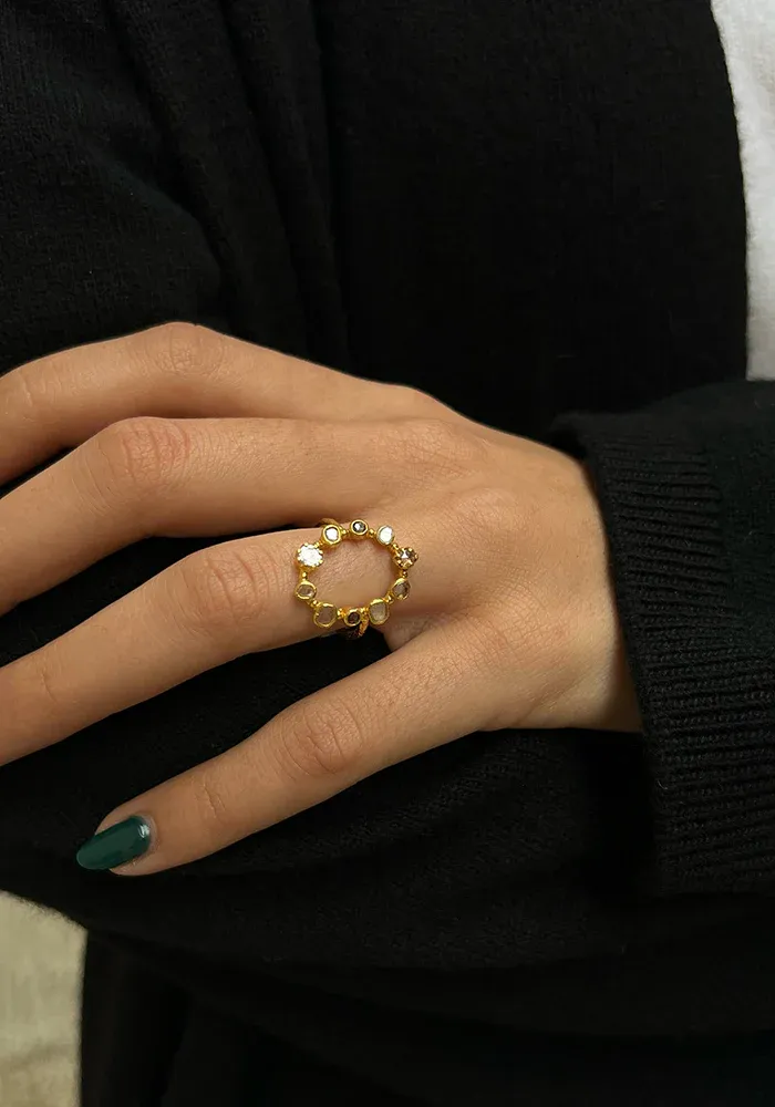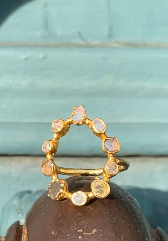 Chaque pierre est unique est coupée de façon irrégulière ce qui donne plus de caractère à la bague!