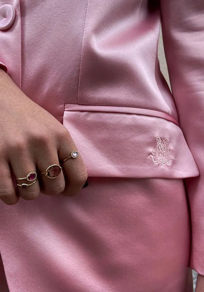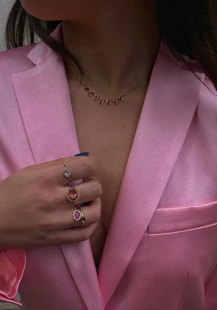 Bague Stella en or jaune 14k avec un saphir rose clair ovale serti de diamants blancs.